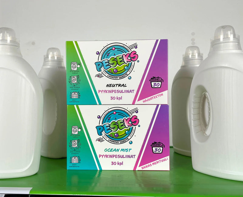 Ei aineiden mittaamista, ei sotkua, ei enää selvitystä veden kovuudesta tai lämpötilasta - Peseks-pyykinpesuliinat sopivat kaikelle!